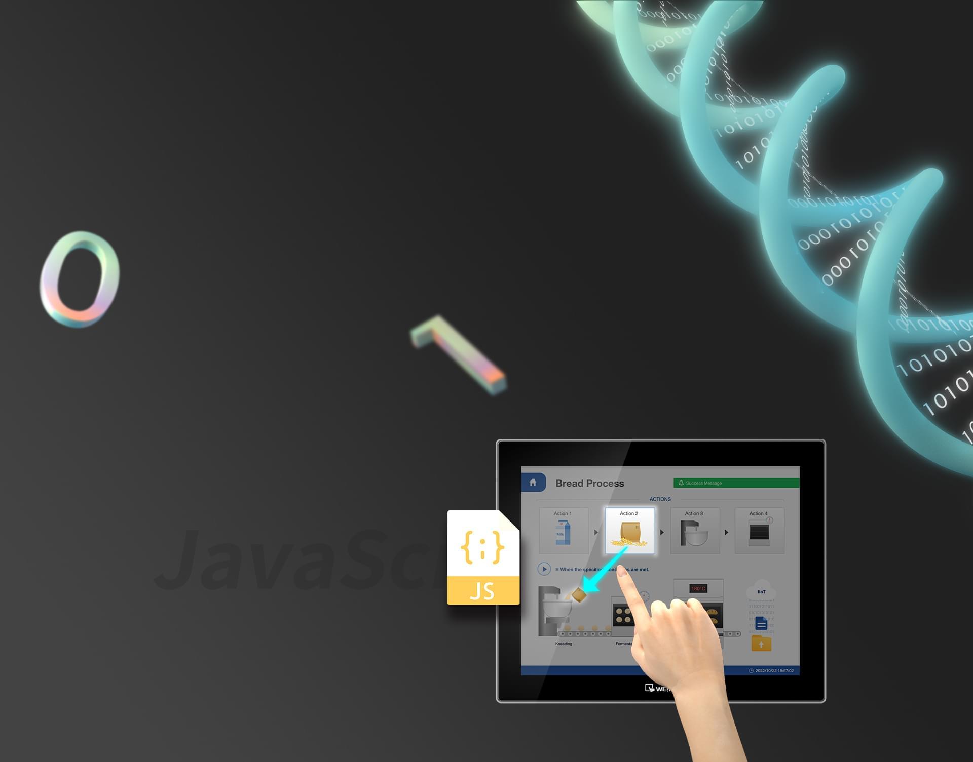 開發(fā)者可以編寫 JavaScript 定制專屬功能,并且能夠串接 WebAPI,突破現(xiàn)有框架限制,將 HMI 彈性定位兩大領(lǐng)域。