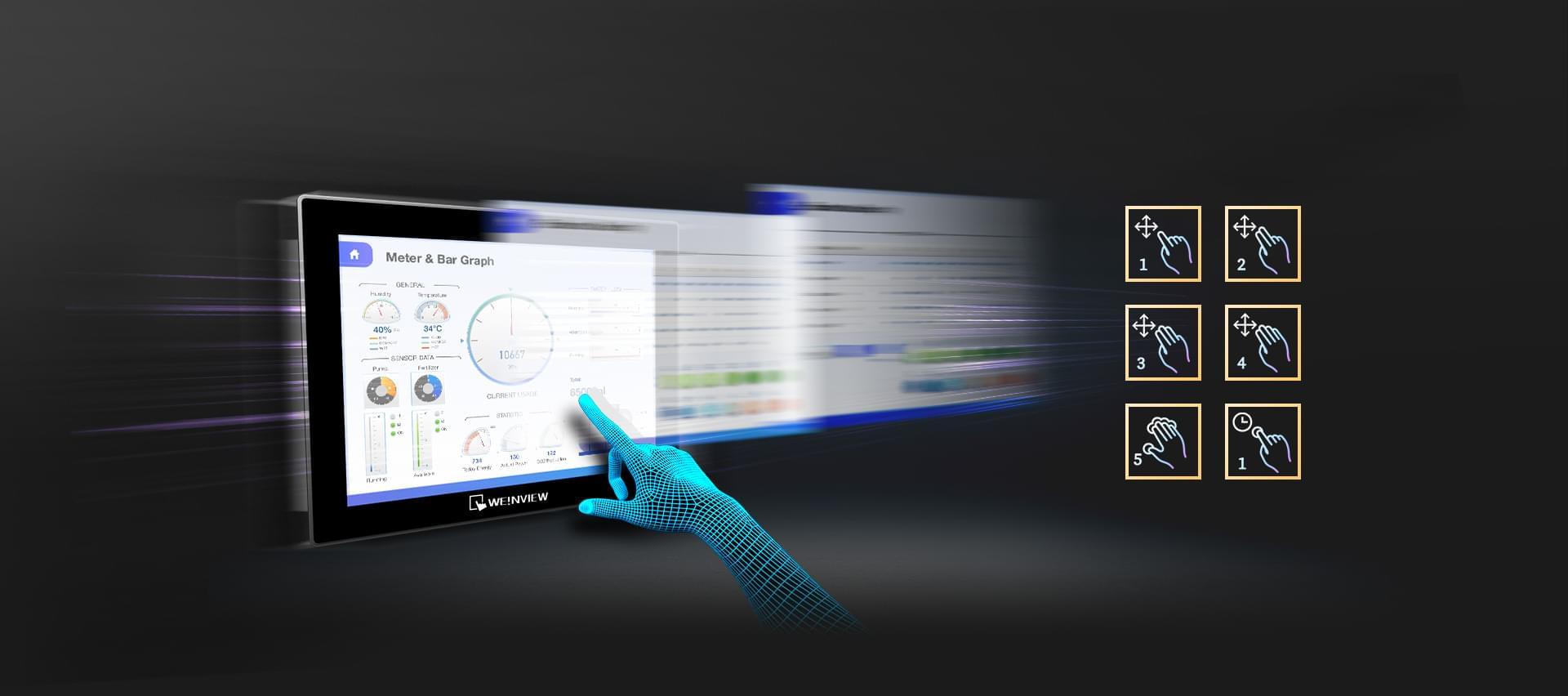 * 多指為電容式屏幕的人機(jī)功能,目前支持機(jī)型為cMT3169X / cMT2167X